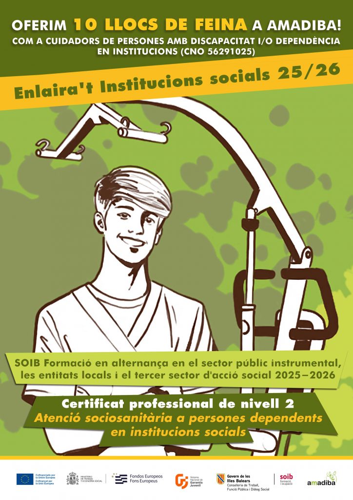 Es combina formació teòrica relacionada amb el certificat de professionalitat Atenció a persones en situació de dependència en Institucions socials i experiència pràctica a l’entitat AMADIBA al llarg del programa i en el marc del contracte de formació en alternança.
