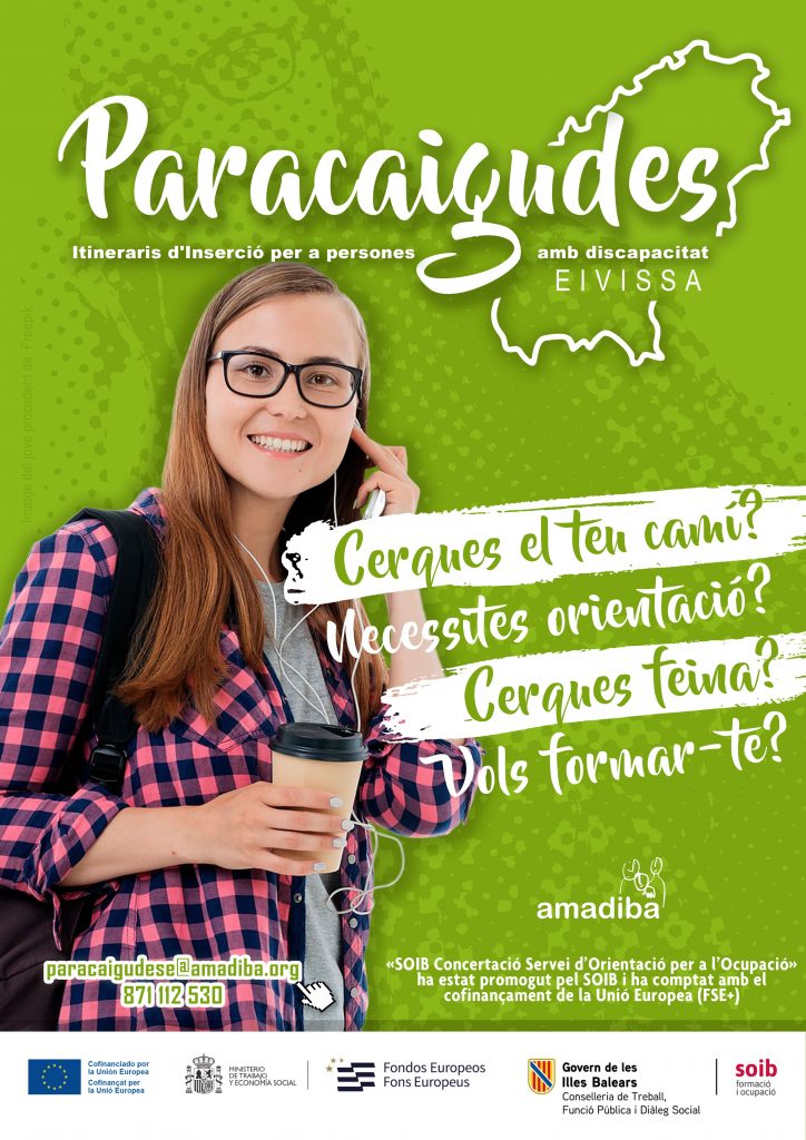 A l’illa d’Eivissa, existeixen els projectes PARACAIGUDES dirigit a persones amb discapacitat i amb dificultats especials d’inserció laboral. Un projecte està orientat a persones amb discapacitat física (SOODF-01/25) i l’altre projecte està orientat a persones amb discapacitat intel·lectual (SOODI-01/25).